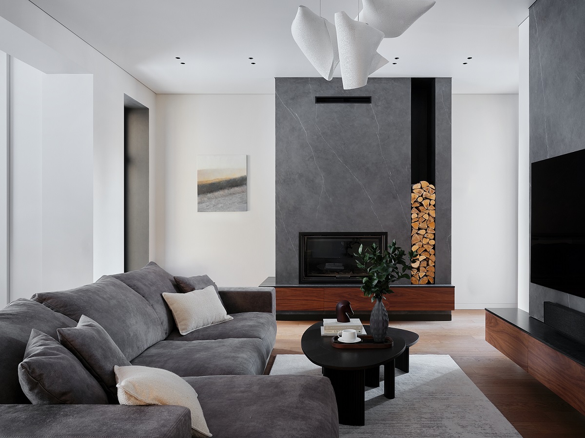 Палубная укладка разных по длине плашек из натурального дерева на прочной основе каменно-полимерного композита может быть выполнена по направлению света от окна (классический способ), перпендикулярно этому свету (если есть задача вытянуть комнату) или по диагонали.